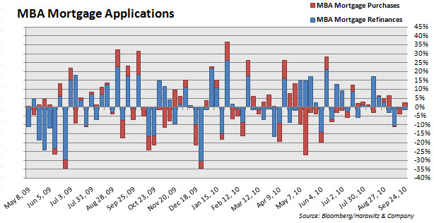 The latest reading for the mortgage applications shows a slight switch. Now the report shows that the applications that came in are for purchases and a smaller amount refinances. That is good news for the housing market in general. At least there is some purchases being contemplated.